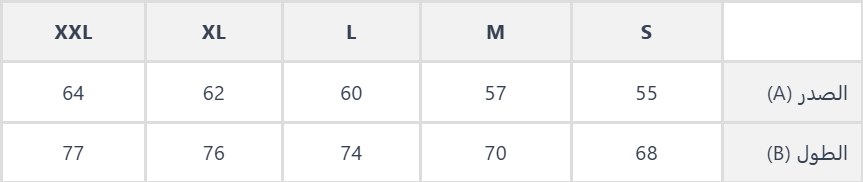 يرجى ملاحظة أن دليل المقاسات يعرض قياسات المنتج عند وضعه مسطحًا. قد تختلف القياسات الفعلية للمنتج بحد أقصى (2 سم).