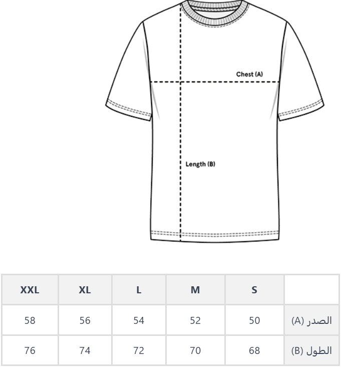 يرجى ملاحظة أن دليل المقاسات يعرض قياسات المنتج عند وضعه مسطحًا. قد تختلف القياسات الفعلية للمنتج بحد أقصى (2 سم).